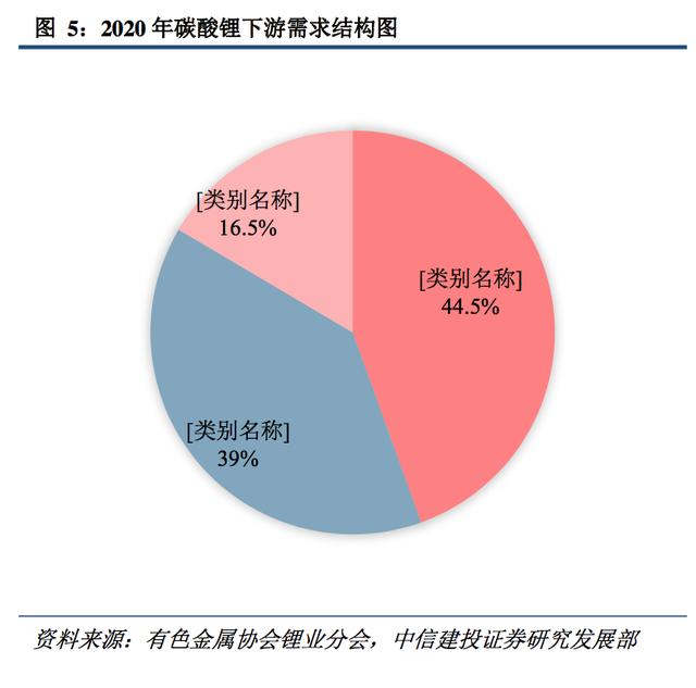 由于电动汽车行业的迅猛发展趋势,预计动力电池将成为下游需求中增速最快的领域,根据我们的测算,到2020年,碳酸锂下游消费结构中,动力电池的占比将达到44.5%,传统工业和3C电子产品的占比将下降至39%和16.5%。