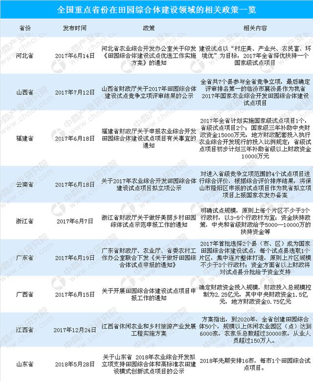 田园综合体恰逢机遇窗口期 2018年全国重点省份田园综合体政策汇总