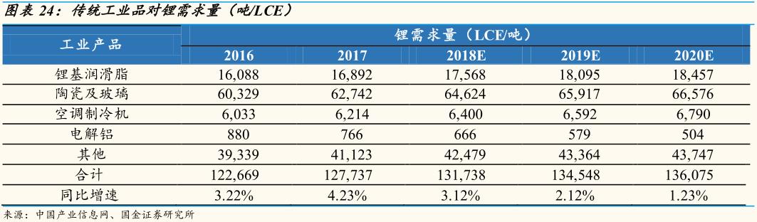 假设国内新能源汽车动力电池耗锂量占全球比维持40%的比例,那么预计2018年全球动力电池耗锂量将会达到10.1万吨碳酸锂当量,而2020年消耗将会达到22.7万吨碳酸锂当量。 钴酸锂是3C产品电池的正极材料,与3C产品的生产密切相关。2017年3C产品总出货量达到21.65亿,同比下降1.88%。电池材料对锂需求稳定,且市场基本处于饱和状态,3C产品对锂需求弹性相对较小。 2017年,全球3C产品对于锂的需求量折合LCE达到35,398吨,同比增速缓慢,预计未来进一步降到接近于0%,对锂的需求比较平稳。 锂在传统工业上的需求主要是在用作润滑脂、陶瓷及玻璃的添加剂、空调制冷机的吸收剂等。需求相对稳定。 锂在储能电池上的应用主要有三类,分别是锂一次电池的负极材料、锂电自行车中的锂离子电池、用于太阳能/风力/可再生能源发电设备储蓄能源用的蓄电池。2017年储能电池合计耗锂量达到9,718吨碳酸锂当量, 从中短期来看,价格仍将处于下行通道,但整体下行空间已相对有限。未来有三个成本线将对碳酸锂价格形成支撑。6-8万/吨(含税)的云母提锂成本线,4-6万/吨(含税)的矿石提锂成本线,2-3万/吨(含税)的盐湖提锂成本线。我们预计,碳酸锂价格将在矿石提锂的成本区间附近获得支撑。 赣锋锂业早期成立于2000年,经过18年的发展,成长为一家打通锂电池产业链的锂电龙头企业。公司2010年实现A股上市,其后进入快速发展阶段。目前公司主要产品包括金属锂、碳酸锂、氯化锂、丁基锂、氟化锂等二十余种。 通过产业链上下游延伸,公司主营业务已从最初的锂加工行业,向上游锂矿开采、下游锂电池行业进一步延伸和拓展,成长为新能源汽车全产业链布局的锂电龙头。 今日公告称,公司及全资子公司赣锋国际与"特斯拉"签订《战略合作协议》,约定自2018年1月1日起至2020年12月31日(可延期三年),特斯拉指定其电池供货商向公司及赣锋国际采购电池级氢氧化锂产品,年采购数量约为公司该产品当年总产能的20%。