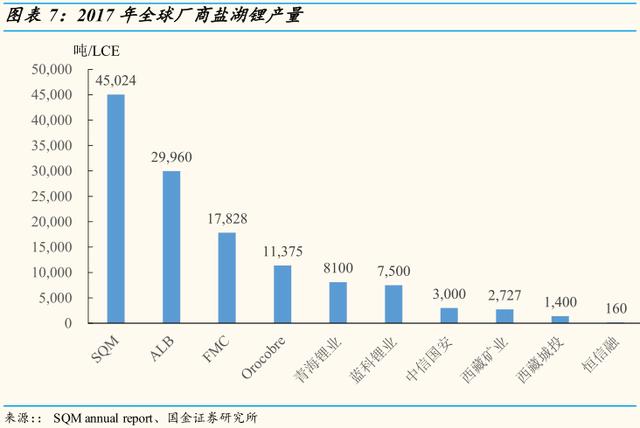 全球盐湖锂产量主要集中在智利、阿根廷、中国三个国家。2017年中国盐湖提锂产量有20,160吨碳酸锂当量。
