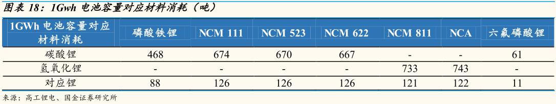 目前市场上仍以523/622为代表的三元材料与磷酸铁锂作为新能源汽车正极的原材料,因此市场对碳酸锂需求仍然旺盛。而NCM811和NCA为代表的高镍三元材料目前使用率在5%-10%之间。