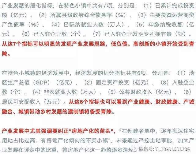 特色小城镇3大指标类别18个细化指标,3大指标类别为“经济发展”、“公共服务”、“绿色生态”。18个细化指标详见下图: