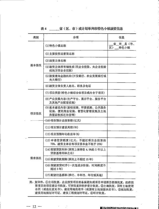 省级发展改革为组织手机特色小镇信息,汇总印送省级开发银行、农业发展银行和光大银行,并会同省行将完成尽调小镇信息报送总行,抄送国家发展改格委。各总行开辟绿色通道,在2019年1月底完成评审和融资服务,将批复投放情况报送国家发展改革委。