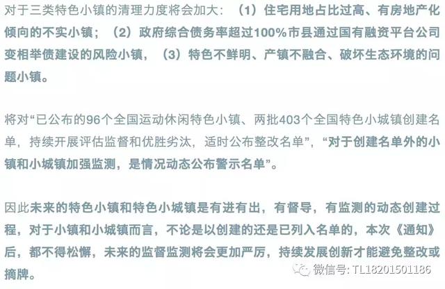 本次国家发改委1401号文件《通知》的一个重要基调就是“纠偏”,对于前期“概念不清、盲目发展及房地产化苗头”进行纠错,要“严格遵循发展规律、严控房地产化倾向、严防政府债务风险为底线”,“建立规范纠偏机制”。要“坚持规范发展”,“规范特色小镇和特色小城镇创建工作,把握内涵、纠正偏差、正本清源,坚决淘汰一批确实产业前景、走形变样异化的小镇和小城镇。”