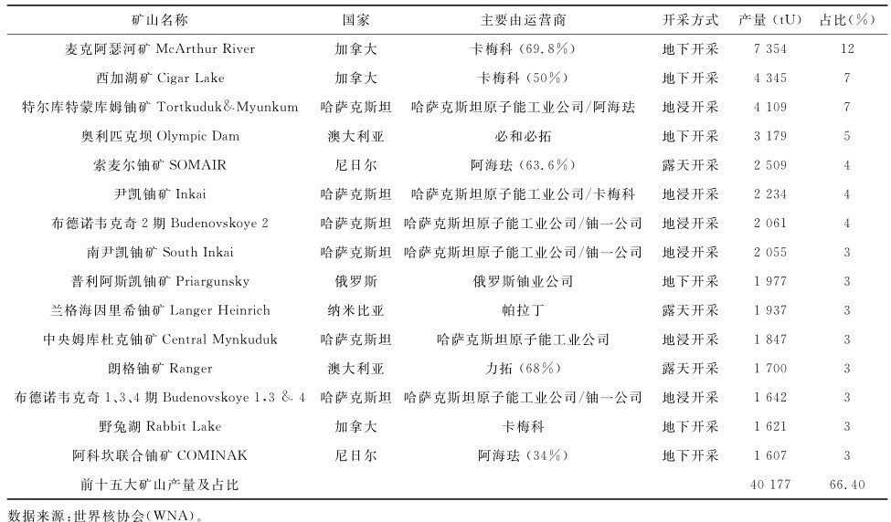 2015年全球主要铀矿山现状表 基本被国际上实力很强公司占据