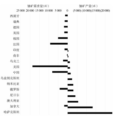 美国铀矿需求量大,铀矿产量低 2015年世界核协会的数据统计
