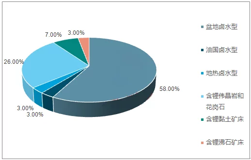 全球锂矿床主要有五种类型,即伟晶岩矿床、卤水矿床、海水矿床、温泉矿床和堆积矿床,目前开采利用的锂资源主要为伟晶岩矿床和卤水矿床。