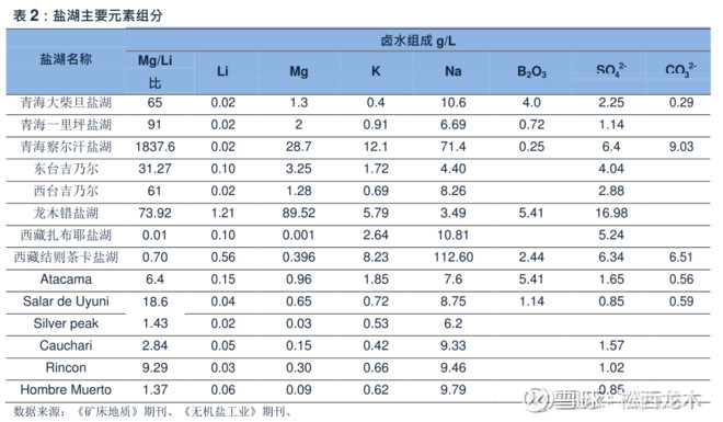 据了解, 目前全球生产的碳酸锂原料有70%来自盐湖卤水, 仅30%来自矿石。而我国卤水提锂比例较低, 矿石提锂占比高达80%。究其原因, 一方面西藏碳酸盐型盐湖卤水提锂技术虽已成熟并产业化, 但由于企业生产管理、技术应用等方面的问题, 导致生产效益较低, 难以达产、扩产;另一方面青海柴达木盆地尽管盐湖锂资源极其可观, 但因镁锂分离技术难题尚未解决, 大大限制了盐湖提锂企业的产能扩张, 再加上碳酸锂常处于副产地位, 难以单独扩展提锂产能, 故要实现锂产业化还需做好基础研发和技术攻关工作。