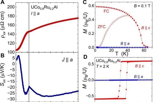 新研究表明,这种铀-钴-钌-铝合金具有很强的热电特性,热量产生的横向电压,是前纪录保持者(钴-锰-镓化合物)的四倍。