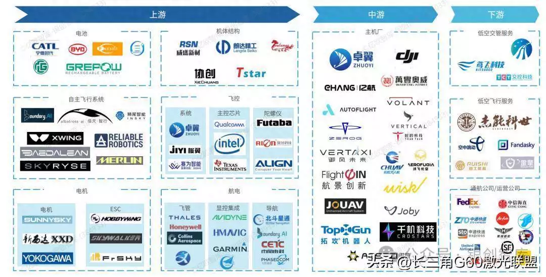 中游涵盖了eVTOL、无人机以及直升机的生产制造领域,同时亦包括与整机生产紧密相关的高端装备制造、低空基础设施与飞行保障等领域。