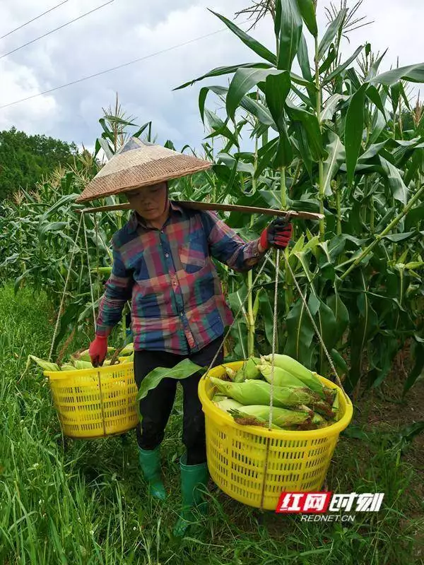 村民在采收玉米。红网时刻新闻6月28日怀化讯(记者 张兴诚 通讯员 胡仕和)近日,走进通道侗族自治县万佛山镇木脚村,一片片郁郁葱葱的玉米地映入眼帘,饱满的水果玉米和甜玉米在微风中轻轻摇曳,村民们正忙碌而有序地穿梭其中进行采摘,一幅生机勃勃的乡村产业发展画卷正徐徐展开。