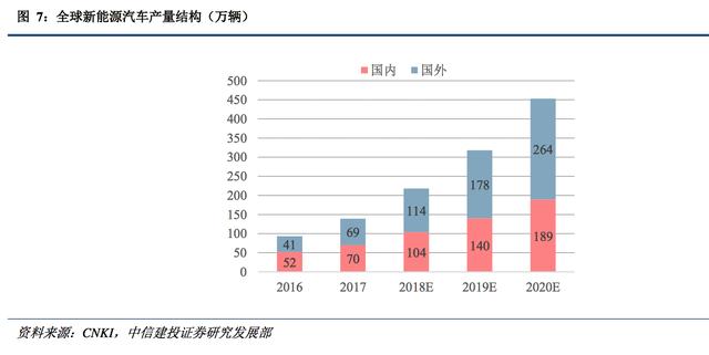 2017年全球新能源汽车产量从93万辆增至139万辆,增速达49.5%,预计到2020年全球新能源汽车产量将达450万辆左右。