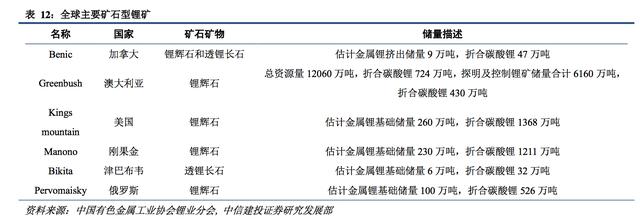 其中中国锂矿储量为320万吨,占全球锂矿储量的22.12%;澳大利亚锂矿储量为160万吨,占全球锂矿储量的11.06%。