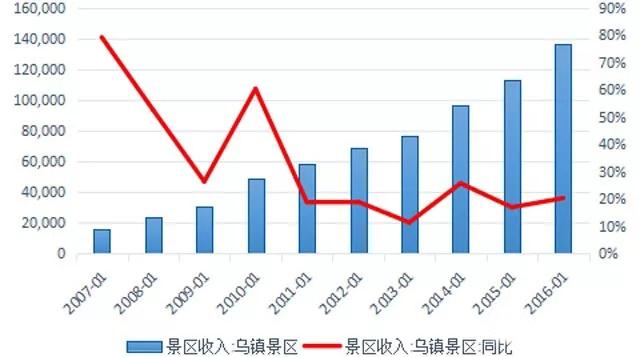 乌镇是景区盈利的典型代表,其经营模式被誉为行业典范,整个古镇都以景区形势围起来,入口处购买门票,分为东栅和西栅,票价为东栅100元、西栅120元、联票为150元。走入古镇会发现各类商户的业态不会重复,分布科学,注重与古镇定位相符的业态,比如手工艺店、特色客栈、传统餐饮等,会根据酒吧区,小商店区,传统工艺区等进行分布,每个 细分业态只有一家店,避免商户间的恶性竞争。偏重旅游的特色小镇,旅游消费产业链完善,上下游产业核心都掌控在投资者手中。