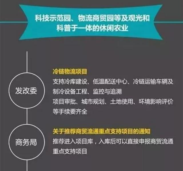 休闲农业方面:农业局一二三产业融合项目重点支持发展休闲农业的园区。国家和各省每年都会评定休闲农业示范点、示范园区等经营好的农庄典范,农庄都可以进行申报,但是要达到园区80亩以上。