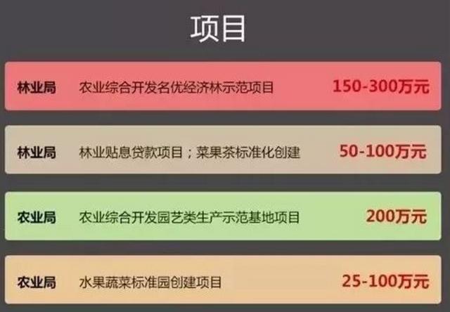 可不是只有农业部门可以申请补贴哦!休闲农业是一个“综合体”,可能包含种植版块、养殖板块、林业板块、加工版块、旅游版块、教育板块等等,不同版块都有不同部门重点支持的,即使是同一板块在不同部门也能申请到不同的补贴。