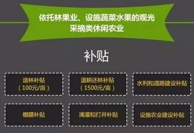 如果是设施农业,可以申报的补贴种类包括棚膜补贴、滴灌和打井补贴、设施农业建设补贴等 ;承包山林地的林果业及观光农业,则可以申请造林补贴、退耕还林补贴、水利和道路建设补贴等,这里介绍一些金额多的具体项目。