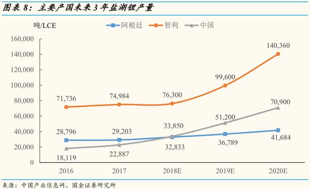 全球盐湖锂产量主要集中在智利、阿根廷、中国三个国家。2017年中国盐湖提锂产量有20,160吨碳酸锂当量。