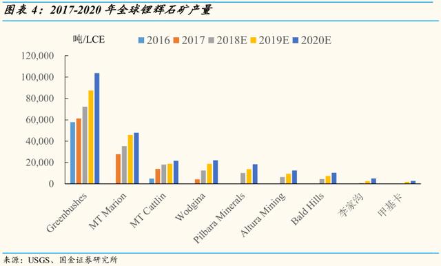 全球锂辉石产量90%以上集中于Greenbushes、MTCattlin、MTMarion三大锂辉石矿,分别由Talison、GalaxyResources、RIM三大企业承包采矿权,控制全球90%的锂辉石矿产。供给端,未来产生Wodgina、Pilbara、Altura、BaldHills等有效供给。