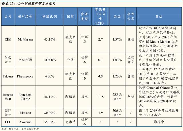 从2011年起,公司开始收购锂资源股权,并于2015年起加速了全球锂资源的布局。截至目前,公司主要通过参股资源的方式获得包销权,已经实现了原料的完全自给,未来不排除进一步收购控股优质资源。